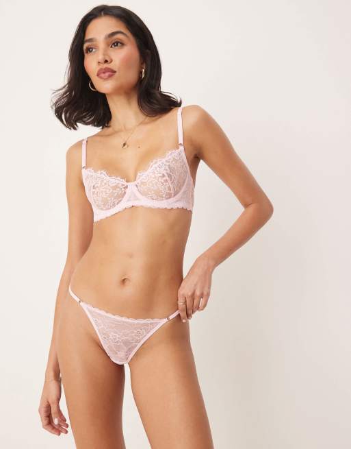 Kat The Label Rosie lace lingerie thong in baby pink