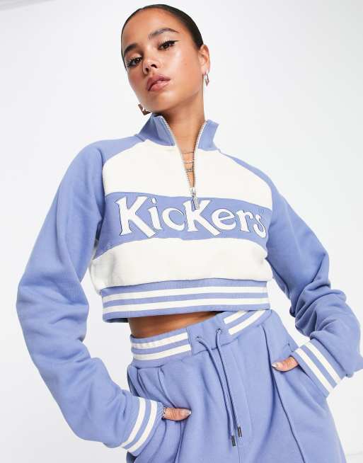 Kickers funnel neck half zip crop varsity sweat in blue (part of a set)