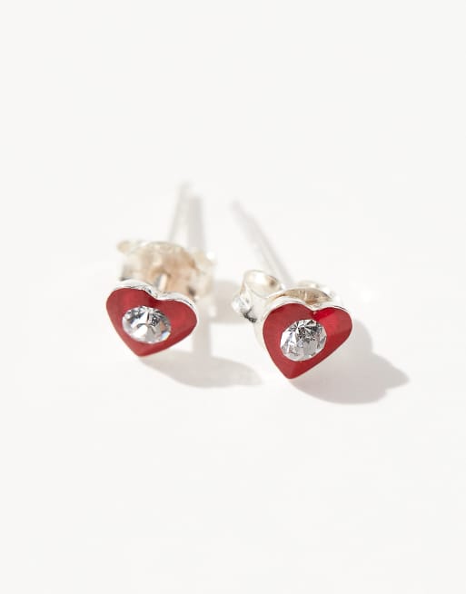 Kingsley Ryan gem set red heart stud earrings in sterling silver