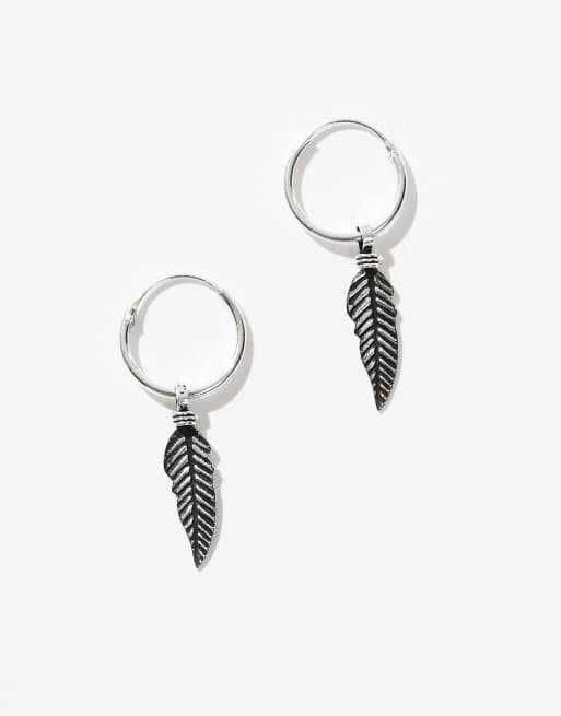 Kingsley Ryan hoop earrings with feather charm in sterling silver