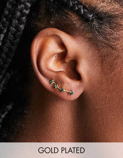 Kingsley Ryan sterling silver gold plated climber earrings with emerald stone