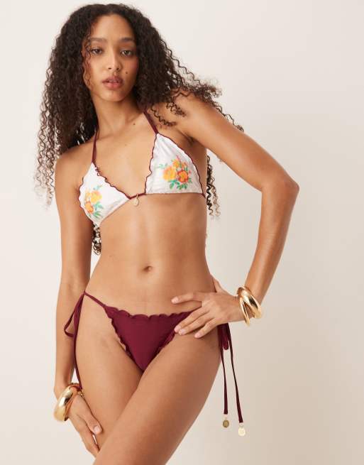 Kulani Kinis tie side thong bikini bottoms in burgundy
