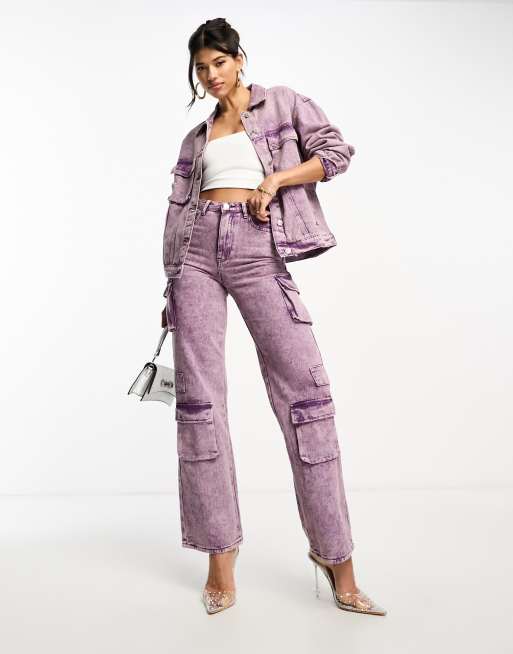 Kyo The Brand denim metallic utility wide leg jeans in lilac (part of a set)