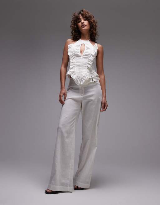 LAAGAM linen pants with silver buckle in white (part of a set)