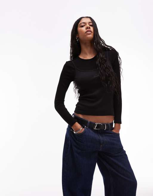 LAAGAM Nova double layer long sleeve t-shirt in black