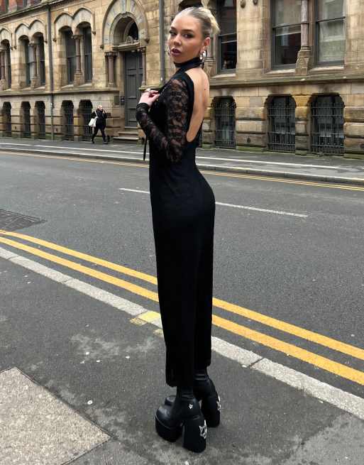 Labelrail x Daisy Birchall longline lace column dress with bow in black