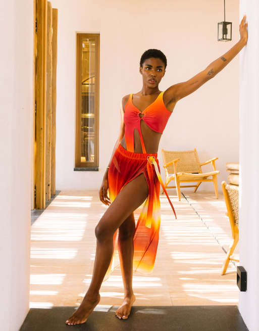 Labelrail x Eva Apio mesh maxi skirt with side tie in orange ombre