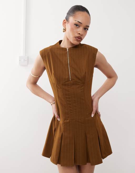 Labelrail x Jennifer McKing corset panelled pinstripe mini dress in brown