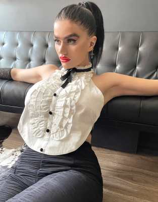 Labelrail x Sophia Hadjipanteli frill front backless shirt in white