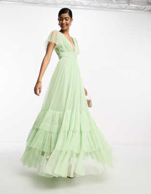 Lace & Beads Bridesmaid Madison v neck tulle maxi dress in sage