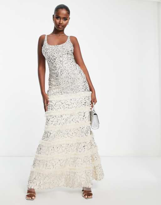 Lace & Beads exclusive embellished maxi dress in champagne
