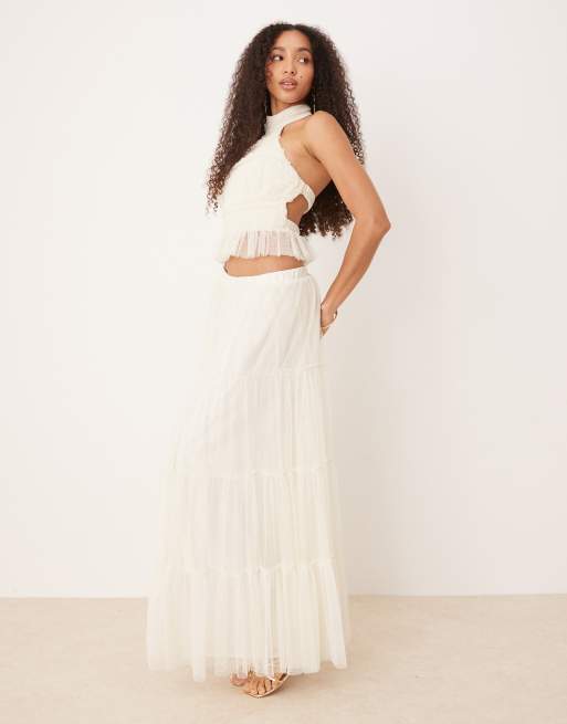 Lace & Beads tiered ruffle maxi skirt in ivory (part of a set)