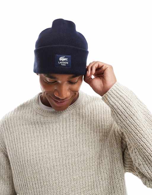 Lacoste front logo beanie in navy