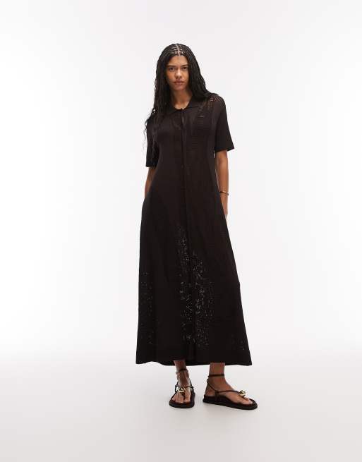 Lacoste laser cut croc maxi beach dress in brown