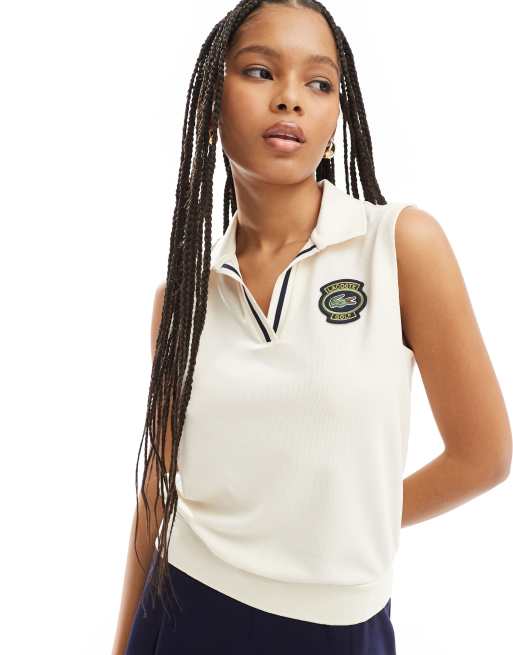Lacoste sleeveless logo polo in off white