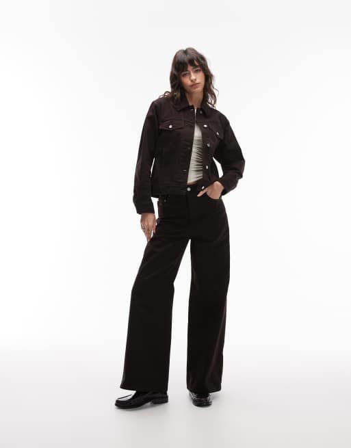 Lacoste wide leg jeans in brown (part of a set)