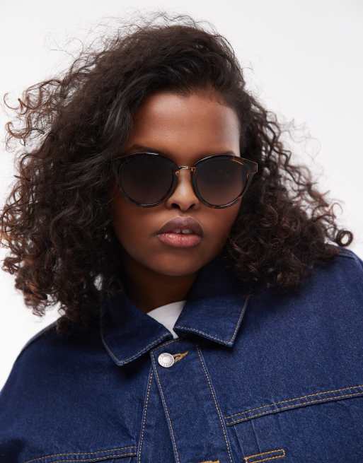 Le Specs Influx round sunglasses with gold detail in tortoiseshell