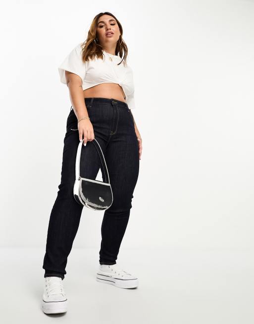 Lee Plus scarlet high rise skinny jeans in dark blue denim