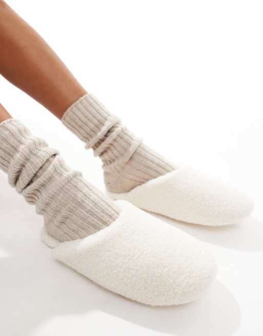 Lindex borg slippers in off white