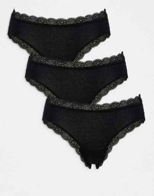 Lindex Emelie 3 pack lace trim brazilian in black