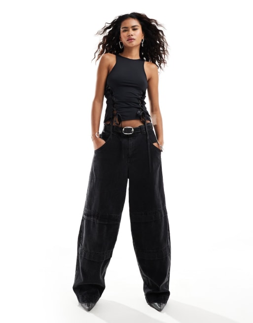 Lioness lace up bow detail top and v front lowrise flared pants