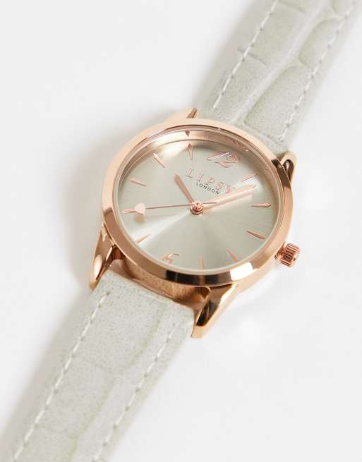 Lipsy leather strap watch in silver and rose gold