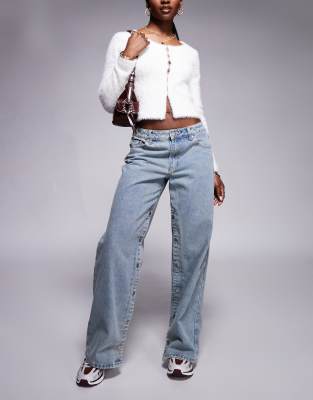 Liquor N Poker low rise baggy jeans with side poppers in mid blue