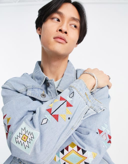 Liquor N Poker set in lightwash blue denim with aztec embroidery