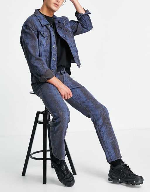Liquor N Poker snake print denim co-ord set in blue