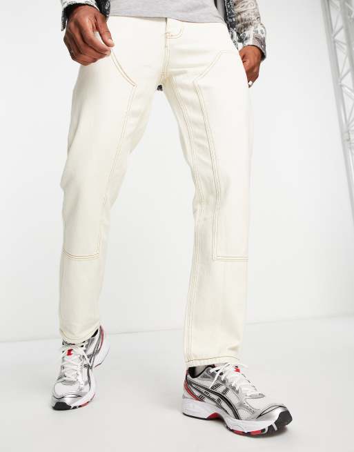 Liquor N Poker straight leg denim jeans in off white with carpenter panels