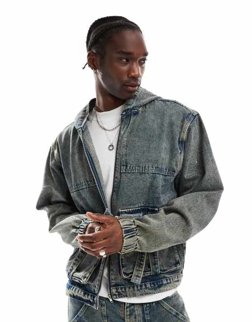 Liquor N Poker textured denim jacket in stone wash (part of a set)