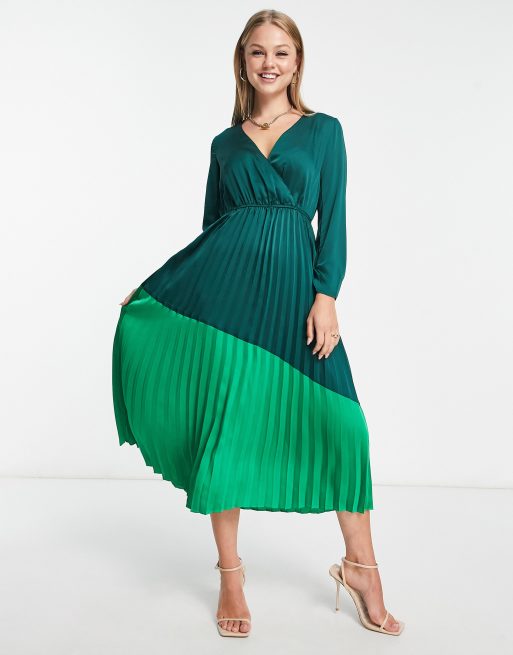 Liquorish midi dress with pleated skirt in contrast green