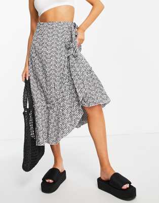 Little Mistress front midi skirt in embroidered gingham (part of a set)