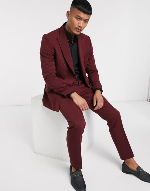 Lockstock double breasted suit in burgundy