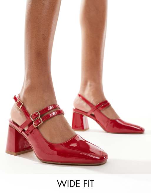 London Rebel Talia Wide Fit slingback mid block heels in red