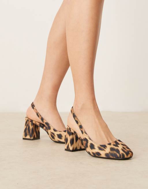 London Rebel Wide Fit slingback block heeled mules in patent leopard