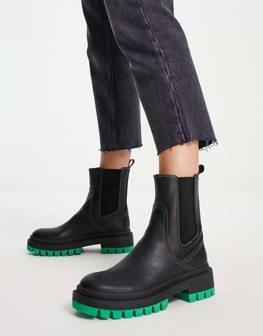 London Rebel chelsea boots in black with green sole