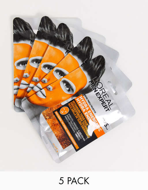L'Oreal Men Expert Hydra Energetic Re-Charge Face Mask x5