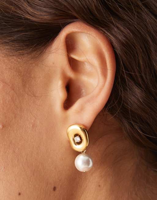Lost Souls embellished stud earring with pearl drop in 18ct gold plated stainless steel