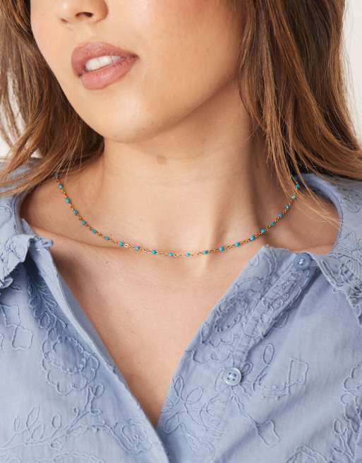Lost Souls stainless steel 18kt gold plated enamel turquoise beaded choker necklace