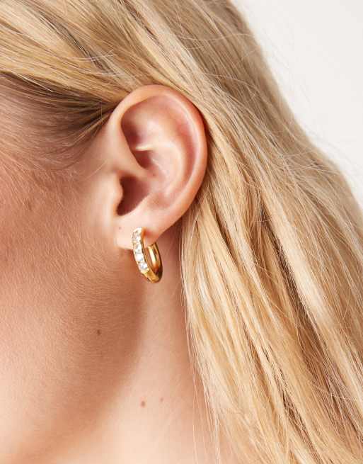 Lost Souls stainless steel 18kt gold plated huggie hoop earrings with embedded crystals