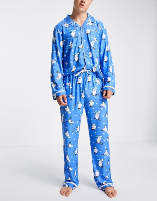 Loungeable polar bear print pyjama set in blue