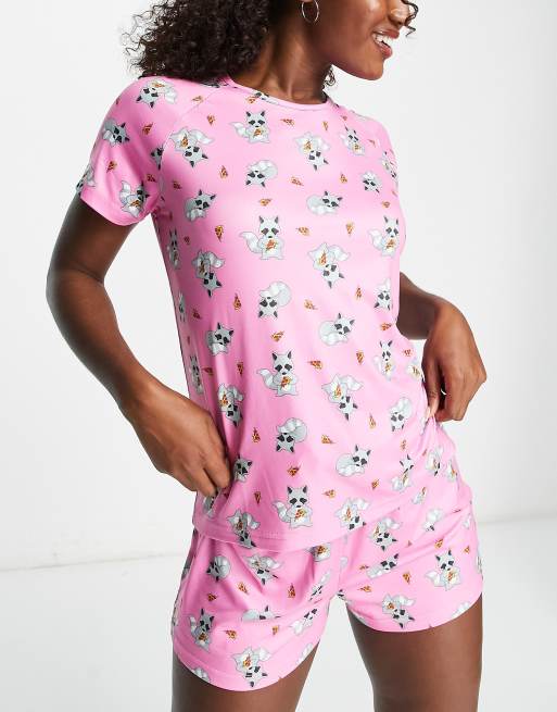 Loungeable racoon short pyjama set in pink