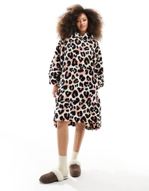 Loungeable soft touch leopard print snuggle hoodie in brown