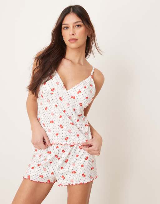 Loungeable strawberry polka dot printed jersey cami and shorts set