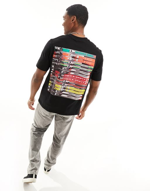 Lyle & Scott script logo and back ski logo print t-shirt in black