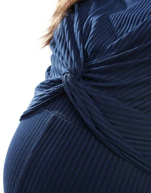 Mamalicious Maternity ribbed jersey cropped t-shirt and wide leg pants set in navy