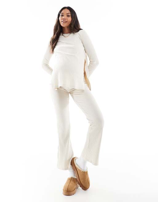 Mamalicious Maternity ribbed top and flare pants set in cream