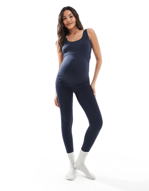 Mamalicious Maternity seamless singlet and leggings set in sapphire navy
