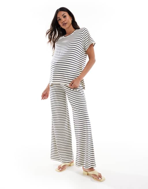 Mamalicious Maternity t-shirt and wide leg jersey pants set in cream and navy stripe